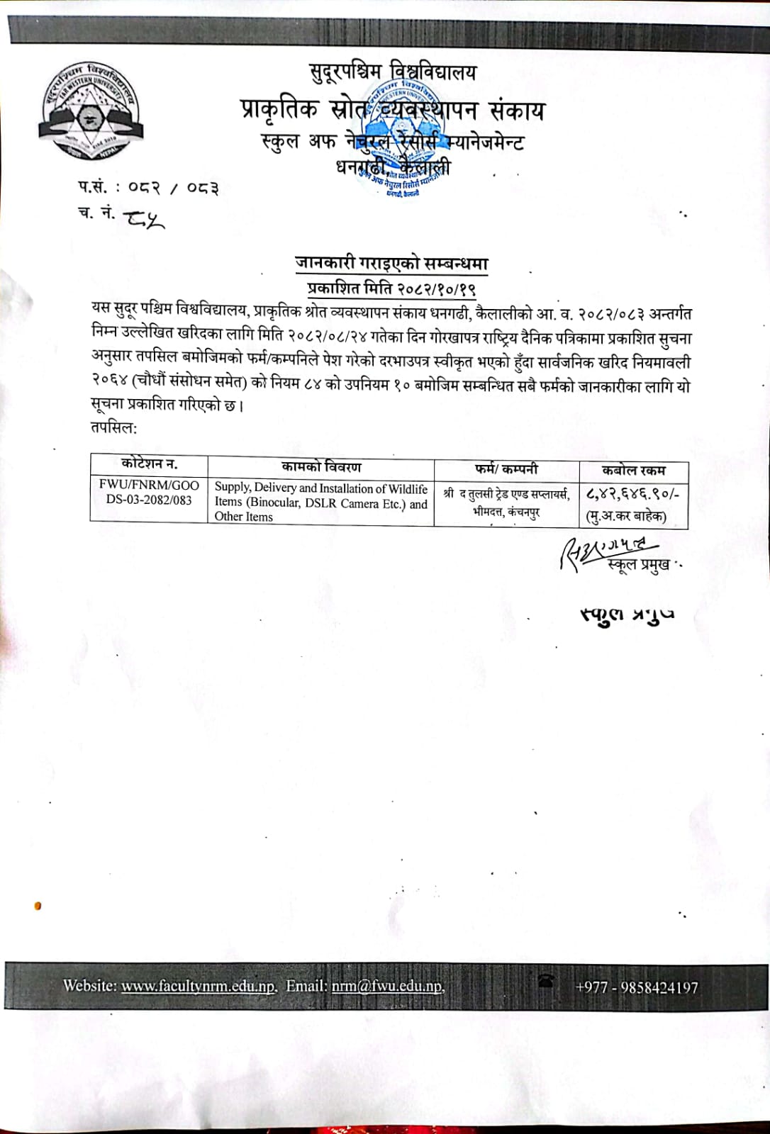 B.Sc. Forestry प्रतिक्षा सूचीमा रहेका विद्यार्थीहरुको भर्ना सम्बन्धी सूचना ।
