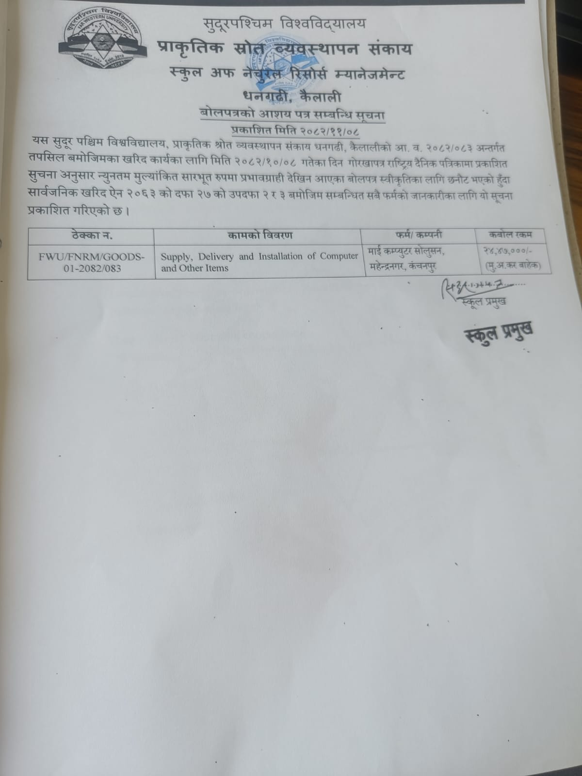 बोलपत्रको आशय पत्र सम्बन्धि सूचना